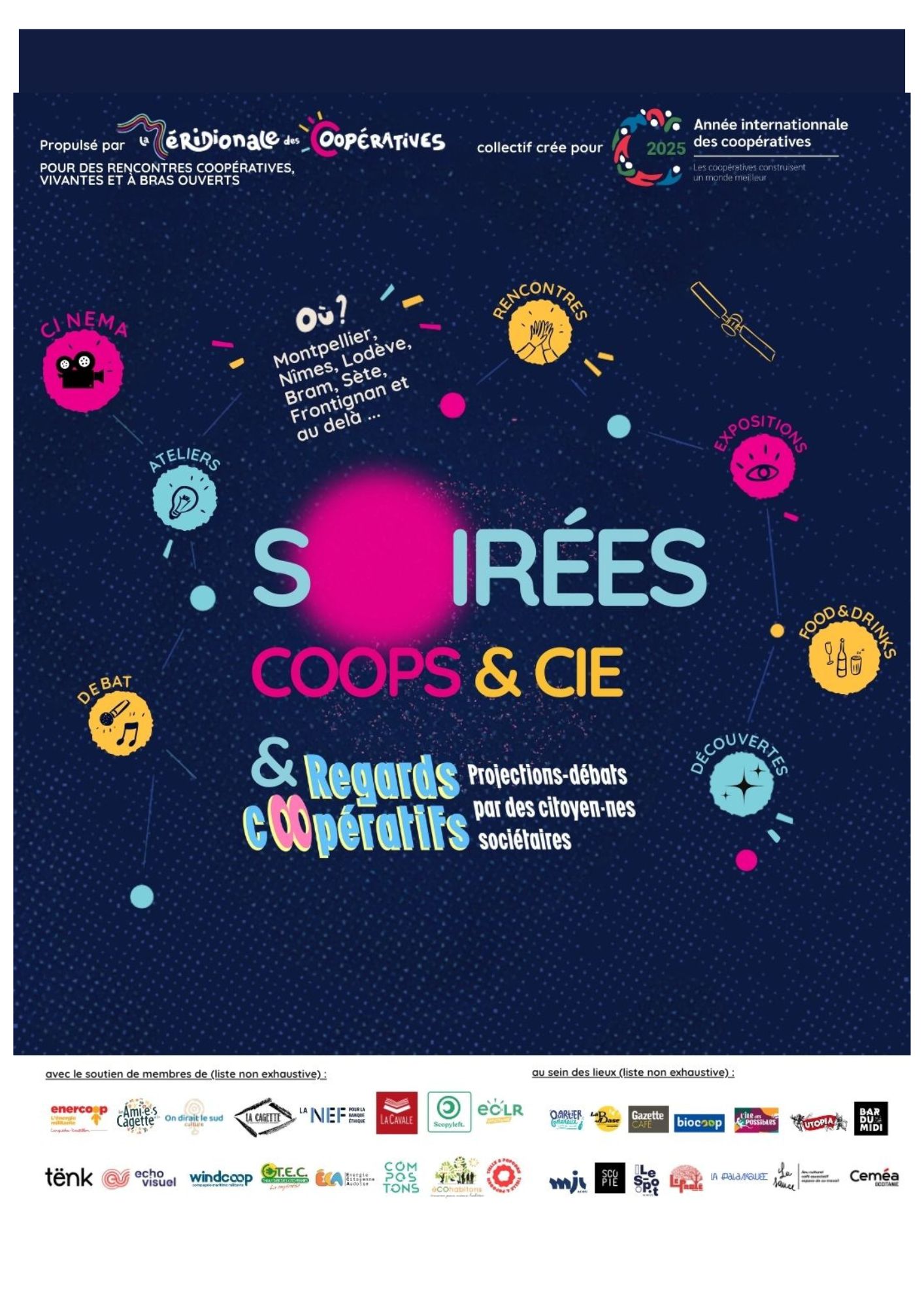 En 2026, la Méridionale des « Coop » vous propose des rencontres avec projections de films et des soirées pour parler ( et faire parler ) de nos modèles coopératifs originaux et près de chez vous, dans le Gard :